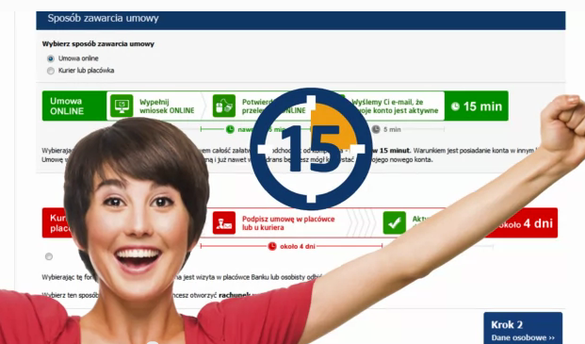 Promocja towarzyszy wprowadzeniu nowego sposobu zakładania rachunków przez Internet, bez konieczności podpisywania dokumentów dostarczonych przez kuriera i bez wizyty w placówce Banku. Dzięki wykorzystaniu e przelewu do potwierdzania tożsamości klienta, już nawet w 15 minut klient może mieć aktywne, w pełni funkcjonalne konto.