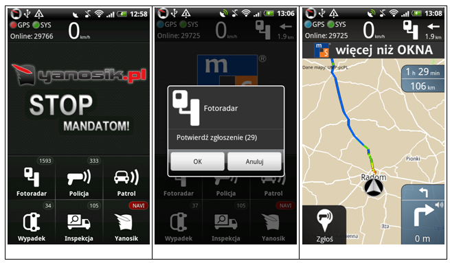 Kolejnym programem wykorzystującym element społecznościowy jest Yanosik. To bezpłatny program nawigacyjny, który wytycza i optymalizuje na bieżąco trasę w oparciu o aktualną sytuację na drogach. Osoba korzystająca z Yanosika dostaje ponadto powiadomienia o zagrożeniach na trasie (także tych dla portfela – fotoradary, patrole policji czy inspekcja drogowa). Baza zdarzeń jest aktualizowana przez samych użytkowników aplikacji. Dodawanie zagrożeń do bazy jest proste – wystarczy nacisnąć odpowiedni przycisk. Podobnie jednak jak w przypadku aplikacji Petrokumpel, element społecznościowy nie sprawdzi się na rzadko uczęszczanych trasach. Tam, gdzie nie ma użytkowników, nie są bowiem dodawane informacje o potencjalnych zagrożeniach. Yanosik jest często przedstawiany jako nowoczesny, smartfonowy odpowiednik klasycznego CB radia.