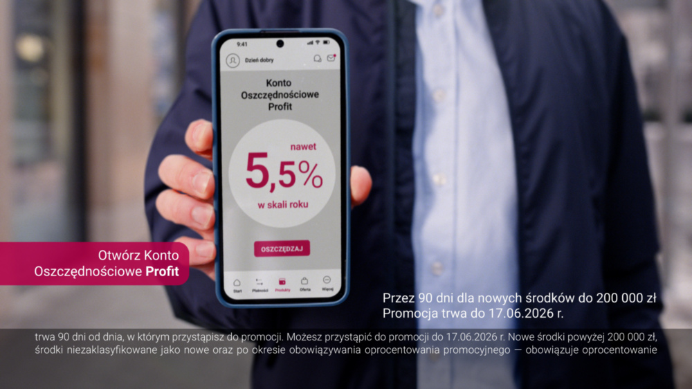 Nawet 5,5% w skali roku mogą zyskać klienci z Kontem Oszczędnościowym Profit w Banku Millennium. Obowiązująca od 23 kwietnia do 17 czerwca 2026 roku promocja oferuje atrakcyjne oprocentowanie dla środków do 200 tys. zł. Warunkiem jest otwarcie Konta Oszczędnościowego Profit, dokonanie minimum 5 płatności kartą lub BLIKIEM w każdym miesiącu promocji. Wyższa stawka oprocentowania premiowego, czyli łącznie 5,50% dotyczy kont Profit otwartych od 18.04.2026. Klienci, którzy mają konta dłużej mogą zyskać łącznie do 4,50% w skali roku. Okres obowiązywania oprocentowania promocyjnego wynosi 90 dni od pierwszej wpłaty nowych środków.