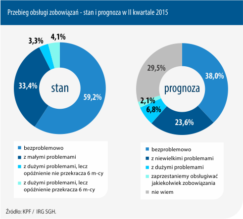 Tak duży udział gospodarstw domowych obsługujących zobowiązania bezproblemowo jest też w znacznej mierze wynikiem malejącego udziału tych, którzy posiadają jakiekolwiek zobowiązania, jednak w znacznej mierze wynika też z rosnących dochodów gospodarstw domowych. O dobrej sytuacji polskich gospodarstw domowych świadczy też znaczący spadek udziału gospodarstw deklarujących duże problemy z obsługą zobowiązań (spadek z 14,2% do 7,4%).