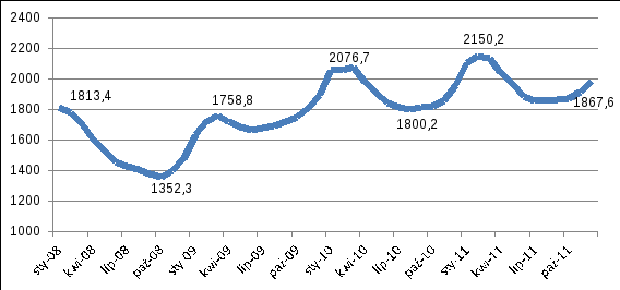 Liczba zarejestrowanych bezrobotnych w Polsce (w tysiącach)
