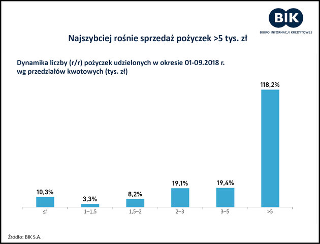 W tym samym okresie firmy pożyczkowe udzieliły pożyczek na kwotę 5,3 mld. zł – wzrost o 47%. Wzrost ten był częściowo spowodowany przystąpieniem do BIK-u kolejnych firm pożyczkowych.