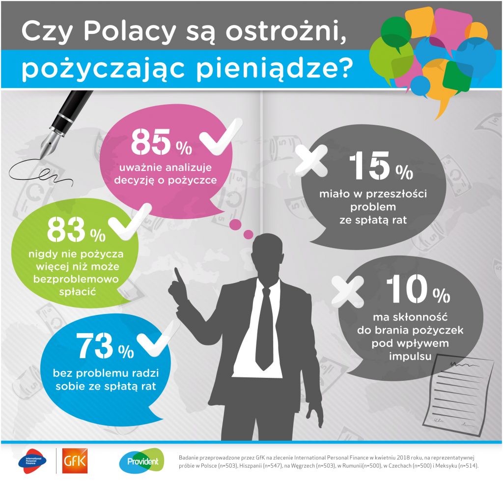– Polacy deklarują, że w racjonalny sposób podchodzą do pożyczek. 85-90 proc. badanych dobrze radzi sobie ze swoimi zobowiązaniami i podejmuje decyzje rozsądnie, w tym 85 proc. deklaruje, że uważnie analizuje swoją decyzję przed zaciągnięciem pożyczki  – mówi Anna Karasińska, ekspert ds. badań rynkowych w Provident Polska, największej firmie pożyczkowej działającej na polskim rynku. – Co ważne, z badania GfK wynika, że Polacy stosują się do zasad odpowiedzialnego pożyczania. 83 proc. respondentów zadeklarowało, że nie pożycza więcej niż jest w stanie bezproblemowo spłacić – dodaje Karasińska.