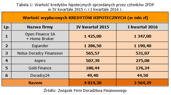 Pierwszy kwartał 2016 r. był intensywnym okresem pracy dla doradców zrzeszonych w Związku Firm Doradztwa Finansowego. Na rynku kredytów hipotecznych panował wzmożony ruch związany z wyczerpywaniem się budżetu programu MdM. Wyraźnie wzrosło zainteresowanie kredytami gotówkowymi, których sprzedaż, w stosunku do poprzedniego kwartału, zwiększyła się aż o 13%. Na początku roku również przedsiębiorcy odważniej sięgnęli po zewnętrzne finansowanie, co przełożyło się na wzrost sprzedaży kredytów dla firm o 7%. Wyścig po dopłaty z MdM