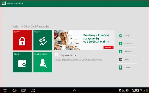 Bank zamierza udostępnić klientom aplikację mobilną na tablety. Będzie dostępna na dwa systemy operacyjne: Android i iOS. Jej funkcjonalność i zakres dostępnych opcji będzie w zasadzie zbliżony do zwykłego, internetowego systemu e-bankowości. Wykonywanie operacji przelewów czy składania wniosków ma być uproszczone i dostosowane specjalnie do urządzeń mobilnych. Nowością będzie natomiast możliwość porozmawiania z poziomu aplikacji mobilnej z doradcą online. Klient będzie mógł rozmawiać z opcją wideo, tylko audio lub za pomocą czatu tekstowego. Połączenie będzie szyfrowane, a rozmowa rejestrowana. Doradca będzie też dostępny z poziomu bankowości internetowej i na stronie banku.