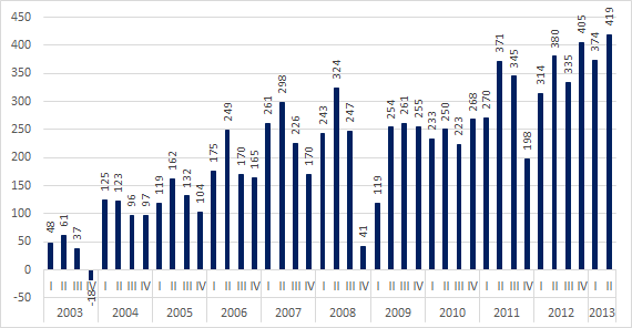 Wynik z prowizji w II kwartale 2013 roku wyniósł 445,65 mln zł (31 proc. więcej niż rok temu) i był zbliżony do szacunków rynku na poziomie 441,3 mln zł (oczekiwania wahały się od 434 mln zł do 449 mln zł).