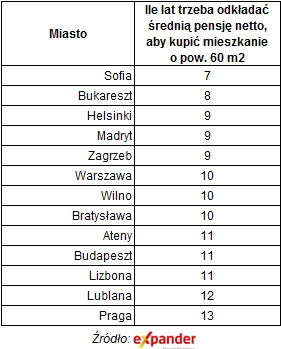 Należy jednak dodać, że w raporcie UBS uwzględniono miasta, które często pod wieloma względami różnią się od Warszawy czy innych polskich miast. Na podstawie danych z portalu numbeo.com przygotowaliśmy więc wyliczenie dla dwunastu zagranicznych stolic, które mogą być lepszym punktem odniesienia. Wśród nich najłatwiej o mieszkanie w Sofii (7 lat), a najtrudniej w Pradze (13 lat). Mediana to natomiast 10 lat, a więc wynosi dokładnie tyle ile w Warszawie.