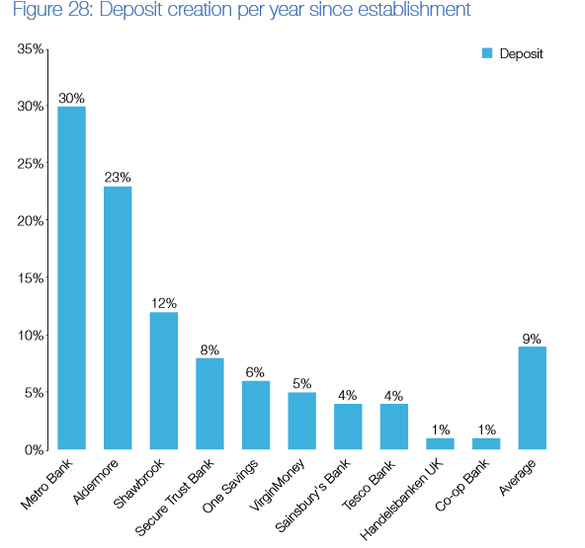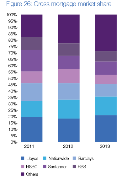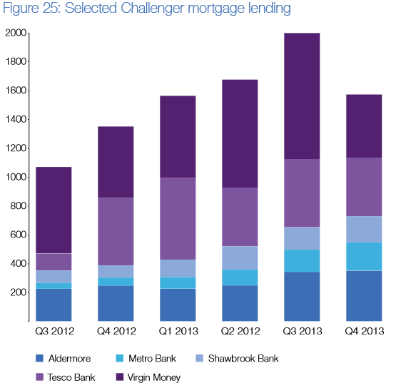 Od czasu otwarcia brytyjskiego rynku na nowe podmioty „challengery” niemal podwoiły udział w rynku kredytów detalicznych, w tym kredytów hipotecznych – od 4 proc. w 2010 roku do 7 proc. w 2013.