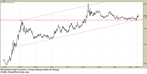 Niestety, zarysowana i ostatnio potwierdzona na wykresie notowań szwajcarskiego franka do złotego 5-letnia linia trendu wzrostowego wskazuje raczej na przedłużenie tej „podróży”, która oby prędzej czy później nie zaprowadziła jej uczestników w ślepą uliczkę.