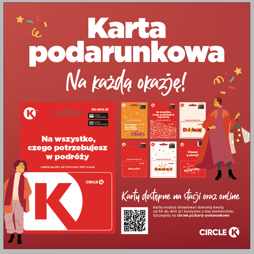 – Naszym celem jest dostarczanie produktów i usług, które są nie tylko wysokiej jakości, ale także przyjazne użytkownikom i łatwo dostępne. Nowe karty podarunkowe wpisują się w tę filozofię, oferując naszym klientom wygodne i elastyczne zakupy, zarówno w naszych polskich, jak i europejskich sklepach. Stale rozszerzamy naszą ofertę, aby klienci na stacjach Circle K mogli nie tylko zatankować, ale także zjeść dobry posiłek, kupić świeże produkty, a od teraz także znaleźć inspirację na prezent – podkreśla Renata Timoščik, Market Development Director w Circle K Polska.