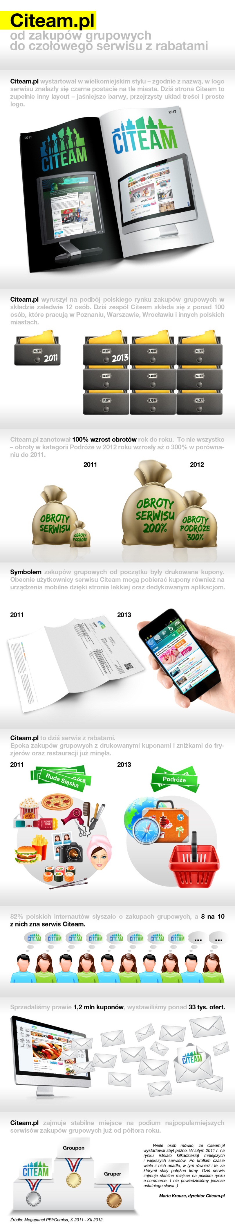 W ciągu zaledwie dwóch lat zmienił się nie tylko sam Citeam.pl, ale również cały rynek zakupów grupowych w Polsce. Dziś królują oferty z kategorii zakupy i podróże kierowane do masowego odbiorcy, a nie zniżki do lokalnych usługodawców dedykowane tylko mieszkańcom dużych miast.
