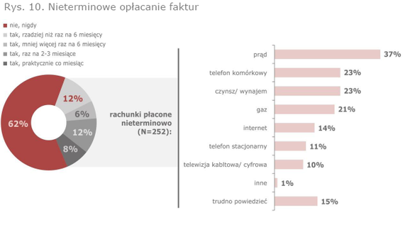 Jednym z popularnych sposobów na ograniczenie wydatków domowych jest niepłacenie faktur w terminie. Z premedytacją robi to aż 40 proc. ankietowanych. Najczęściej opóźnienia dotyczą opłat za prąd i telefon komórkowy. Gdy przychodzi jednak do stałego ograniczenia wydatków, Polacy w pierwszej kolejności rezygnują z abonamentów stacjonarnych, telewizji i internetu. W ostatnich dwóch latach aż 29 proc. dokonujących płatności zrezygnowało z różnych usług telekomunikacyjnych.