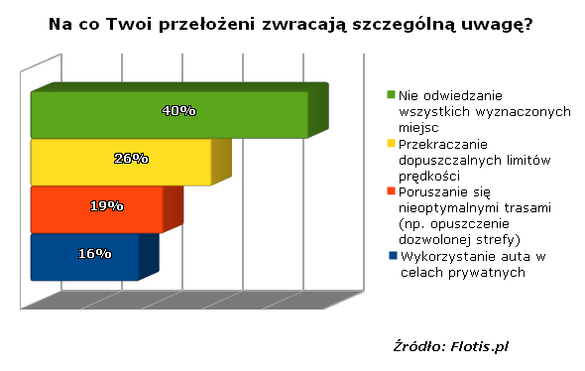 Jednak czy możliwość poruszania się autem służbowym w czasie wolnym od pracy wpływa na częstotliwość łamania przepisów prawa? Niestety część kierowców mając świadomość posiadania auta służbowego faktycznie bardziej szarżuje na drodze – mówi Małgorzata Słodownik, manager działu handlowego monitoringu pojazdów Flotis. Badania pokazały, że tylko co czwarty pracownik kontrolowany jest przede wszystkim pod kątem przekraczania wyznaczonego przez pracodawcę limitu prędkości – dodaje M. Słodownik.
