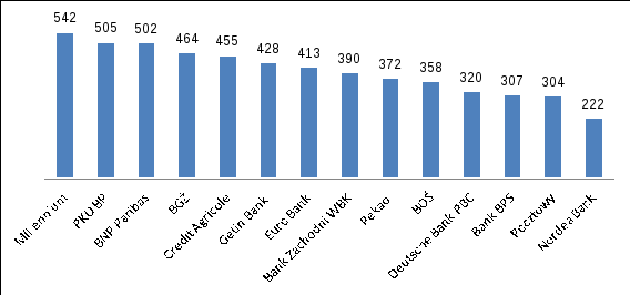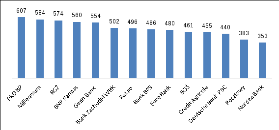| Pekao | 592 | 571 | 496 | 431 | 372 |