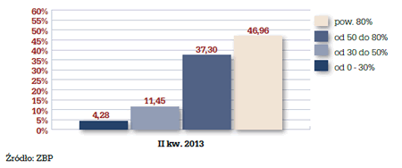 Struktura nowo podpisanych umów kredytowych w II kwartale 2013 r. według wskaźnika LTV