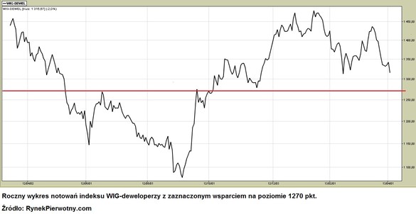 Właśnie mija dokładnie 7 miesięcy od ustanowienia we wrześniu ub. roku przez indeks WIG-deweloperzy dołka notowań, z którego ten następnie odbił się o prawie 40 procent, budząc nadzieję na bliski koniec dekoniunktury w rodzimej mieszkaniówce. Dziś głównie za sprawą 3-miesięcznej korekty notowań na warszawskiej GPW, także kursy większości spółek deweloperskich prezentują się dużo mniej okazale niż jeszcze w początkach stycznia.