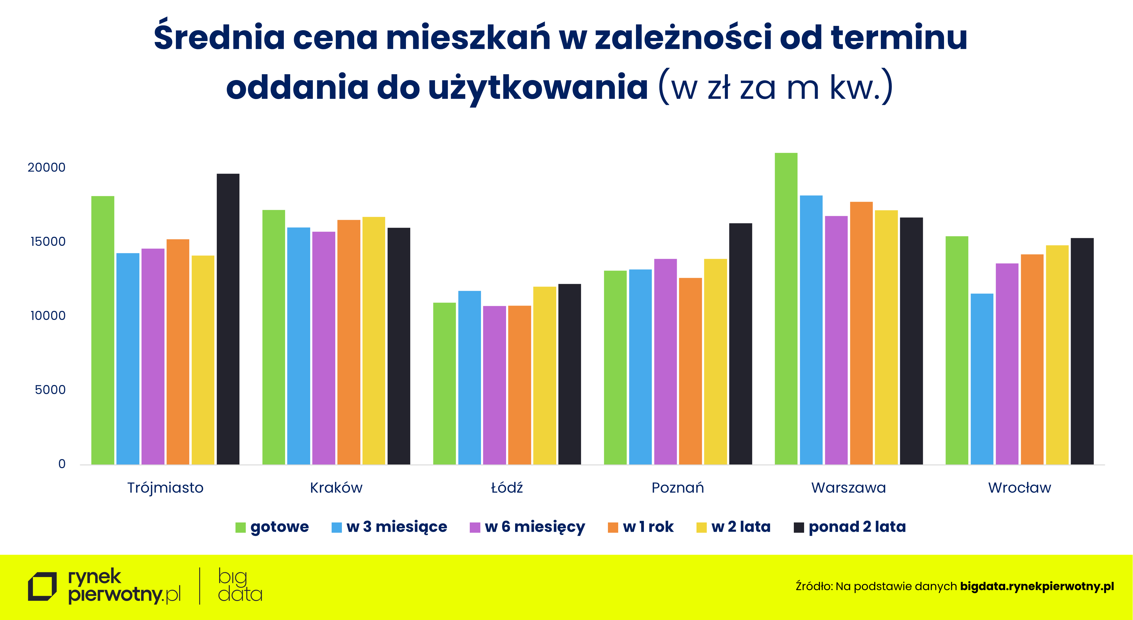 Ekspert portalu RynekPierwotny.pl zwraca uwagę, że Polacy nie mają oporów przed zakupem mieszkanie, które mogą obejrzeć jedynie w folderze reklamowym. Można wtedy przebierać w ofertach. Istotne może być też i to, że deweloper zgodzi się na nieodpłatne zmiany w układzie ścian czy instalacji wewnętrznych. W Warszawie i Krakowie ostatnio doszedł też argument cenowy. Chodzi o to, że w ostatnich miesiącach deweloperzy wprowadzali tam do sprzedaży znacznie tańsze mieszkania w przeliczeniu na metr kwadratowy od tych, których budowa dobiegła lub wkrótce dobiegnie końca. Np. w Warszawie mieszkania z terminem oddania do użytkowania za ponad 2 lata kosztują średnio ok. 16,7 tys. zł za metr kwadratowy, a w Krakowie – ok. 16 tys. zł. Lokale gotowe kosztują tam średnio odpowiednio 21,1 tys. i 17,2 tys. zł za metr kwadratowy, a średnia dla wszystkich mieszkań w ofercie wynosi odpowiednio 17,7 tys. i 16,6 tys. zł za metr.
