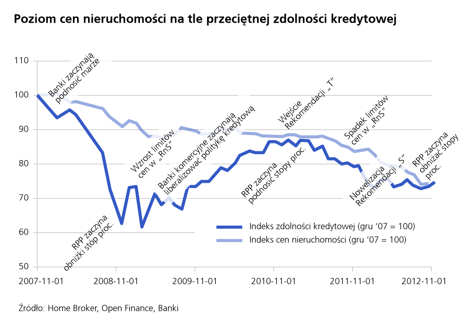 Choć nominalnie ceny wciąż są wyższe niż w 2004 roku, od którego zaczął się silny trend wzrostowy trwający do końca 2007 roku, to uwzględniając wzrost wynagrodzeń oraz spadek oprocentowania kredytów hipotecznych, mieszkania są dziś bardziej dostępne niż w 2004 roku. To jeden z czynników, który powinien prowadzić do stopniowego wyhamowywania tendencji spadkowej cen. Kolejnym jest popyt inwestycyjny, który ma szanse wyraźnie wzmocnić się w drugiej połowie przyszłego roku, gdy oprocentowanie kredytów w złotych zrówna się z oprocentowaniem kredytów w euro. Popyt ten wzmacnia dodatkowo postrzeganie nieruchomości jako szczególnie wartościowego dobra z uwagi na ich materialną (a nie księgową) formę, a także możliwość generowania dodatkowych przychodów z tytułu najmu.