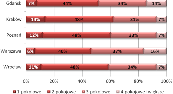 Rynek mieszkaniowy jest mało elastyczny. Wiele zjawisk nie zmienia się w czasie, a ewentualne obserwowane zmiany zachodzą powoli. Jednym z takich zjawisk są preferencje w zakresie wielkości mieszkań. Na największych lokalnych rynkach kraju mieszkania dwupokojowe pozostają podstawowym produktem w ofercie deweloperów.