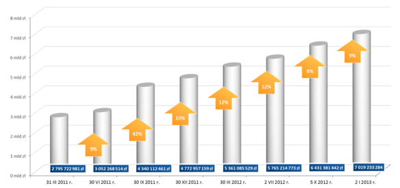 Na początku października 2012 roku łączna wartość spraw wpisanych do rejestru Dłużników ERIF przekraczała 6,4 mld zł. Czwarty kwartał 2012 przyniósł wzrost o 9%, zatem wartość zadłużenia wzrosła do ponad 7 mld zł, zwiększając się o 46% w porównaniu z czwartym kwartałem 2011 roku. Niezmiennie najwięcej spraw, ponad 457 tys., dotyczy zadłużenia w wysokości od 1 tys. zł do 3 tys. zł. Nieco mniej, 408 tys. wpisów to długi o niższej wartości – do 1 tys. zł, a 319 tys. – zadłużenie w przedziale 3 tys. – 10 tys. zł.­­