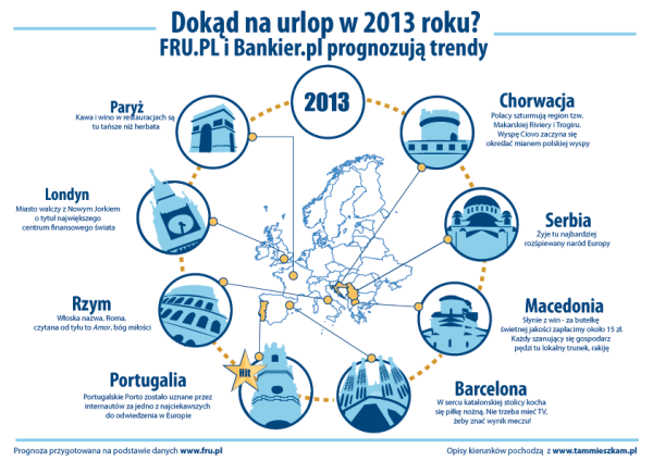 Jeśli urlop, to tylko do it yourself! Trend podróży organizowanych na własną rękę kształtuje się już od kilku lat i w dalszym ciągu zdobywa rzeszę entuzjastów. Latamy coraz częściej i coraz dalej , i wszystko wskazuje na to, że ta tendencja w 2013 roku nie minie. Jakie kierunki urlopowe będą w tym roku wybierane – sprawdziła internetowa platforma rezerwacji biletów lotniczych FRU.PL oraz portal finansowy Bankier.pl.