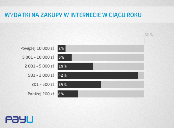 Im większe doświadczenie w e-zakupach mają kupujący, tym więcej zalet tego rozwiązania dostrzegają. 40 proc. osób, które wzięły udział w badaniu, wydaje rocznie od 500 do 2 000 zł na zakupy w Internecie.