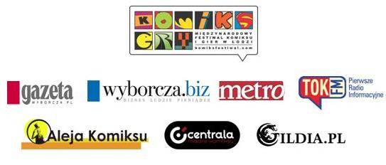 Patroni konkursu: Międzynarodowy Festiwal Komiksu i Gier w Łodzi, Gazeta Wyborcza, Wyborcza.biz, TOK FM, METRO, Aleja Komiksu, CENTRALA – mądre komiksy, Gildia.pl.