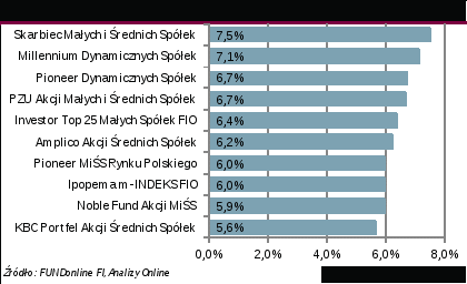 Sytuacja z GPW miała przełożenie na wyniki funduszy inwestujących w Polsce. Rozwiązania akcji małych i średnich spółek po raz kolejny osiągnęły wyższe stopy zwrotu niż fundusze o uniwersalnej strategii. Głównym tego powodem, jest duży udział blue chipów w portfelach rozwiązań akcji polskich uniwersalnych, które w tym roku spisują się słabo na tle małych i średnich spółek. Indeks mWIG40 zyskał we wrześniu aż +6,1%, a sWIG80 +4,0%. Kursy obu indeksów osiągnęły najwyższy poziom od ponad 5 lat. Spółki z WIG20 zakończyły co prawda wrzesień na plusie, ale stopa zwrotu indeksu wyniosła jedynie +0,3%. Fundusze akcji MiŚS zyskały +5,4% we minionym miesiącu. Wszyscy przedstawiciele grupy wypracowali dodatnie stopy zwrotu, a jednostka najlepszego z nich – Skarbiec Małych i Średnich Spółek (Skarbiec FIO), wzrosła o +7,5%. Niemal wszystkie fundusze akcji małych i średnich spółek od początku roku zyskują ponad +20%.