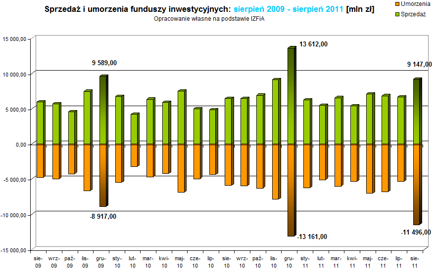 Choć z rynku finansowego odpłynęło 2,35 mld złotych to nie brakowało również chętnych na kupno funduszy inwestycyjnych. Inwestorzy na zakup jednostek uczestnictwa wydali 9,15 mld złotych. Oznacza to, że chętnych, którzy uznali sierpień za okazję inwestycyjną, było najwięcej od grudnia 2010 roku.