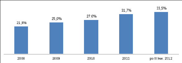 Udział mniejszych miejscowości w kredytowym torcie systematycznie rośnie. Średnio już co trzecia złotówka pożyczana przez banki na nieruchomości trafia poza aglomeracje. Jak wynika z danych Związku Banków Polskich, jest to najwyższy odsetek od momentu pojawienia się tego typu statystyk. W okresie boomu kredytowego w 2008 roku, na „Pozostałe miejscowości” przypadało jeszcze niecałe 22 proc. wartości sprzedawanych kredytów.
