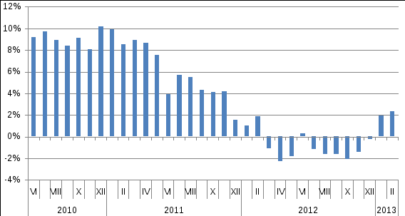 Obliczany każdego miesiąca przez Open Finance i TVN CNBC Indeks Dostępności Kredytowej (IDK), który obrazuje sytuację na rynku kredytów hipotecznych w złotych, spadł w lutym 2013 r. o 4,79 pkt (3,94 proc.) i wynosi 116,89 pkt. W porównaniu do lutego ubiegłego roku wskaźnik jest wyżej o 2,66 pkt (2,32 proc.).