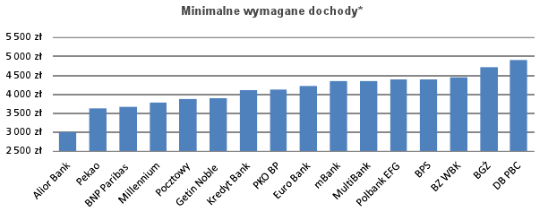Banki stają się bardziej wymagające, ale jednocześnie mocniej różnicują podejście do wysokości dochodów klientów. Na początku czwartego kwartału w pierwszej piątce banków z najniższymi wymaganiami dochodowymi ponownie znalazły się tylko dwa banki (Pekao i Alior).