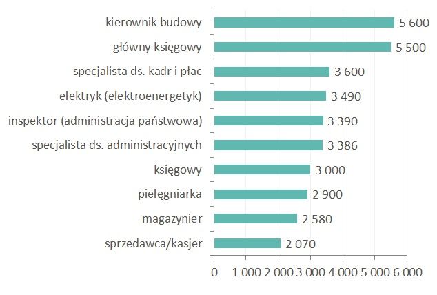 Osoby po 50 roku życia zatrudnione na stanowiskach sprzedawca/kasjer oraz magazynier zarabiali w 2015 roku odpowiednio: 2 070 PLN i 2 580 PLN brutto miesięcznie. Przeciętne zarobki księgowych wyniosły 3 000 PLN, głównych księgowych – 5 500 PLN, a kierowników budowy – 5 600 PLN brutto miesięcznie. Więcej informacji o wynagrodzeniach na różnych stanowiskach znajdą Państwo w aplikacji Moja Płaca.