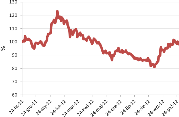 Nie lepiej wygląda opłacalność inwestycji w akcje spółek deweloperskich. Biorąc pod uwagę wartości indeksu WIG-Deweloperzy, który jest pewnego rodzaju papierkiem lakmusowym kondycji tej branży, miniony rok można było zakończyć na minimalnym minusie.