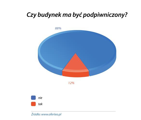 Chociaż Polacy chcą budować tradycyjne domy murowane, to jednak odchodzą od budowania piwnic. Przeprowadzona analiza zapytań pokazuje, że tylko co ósmy zlecający (12%) jest zainteresowany podpiwniczeniem swojego domu.