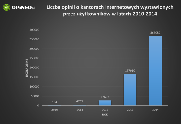 Z analizy pół miliona opinii o kantorach internetowych wyłania się bardzo dobra ocena. Ponad 90% użytkowników Opineo oceniających e-kantory deklaruje, że poleciłoby ich usługi swoim znajomym. To bardzo dużo, zważywszy, że rekomendacja w świecie e-commerce jest jak wirtualna waluta, za którą można kupić pierwszą wizytę klienta mówi Paweł Kucharzak, prezes zarządu Opineo.