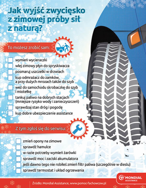 Zmienna pogoda, wahania temperatur, duża wilgotność, szybko zapadający zmrok i niszcząca lakier sól na drogach to wyzwanie dla każdego kierowcy i jego samochodu. Mondial Assistance podpowiada czego nie można pominąć, jeśli nie chce się usłyszeć, że zima w tym roku znowu zaskoczyła kierowców.