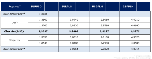 Po odczytach z Chin, rynek na kolejne istotne publikacje czekać musi do popołudniowych odczytów zza oceanu, gdzie podobnie do wczoraj mamy do czynienia z całą ich serią. Przed rozpoczęciem sesji poznamy indeks NY Empire State w kwietniu obrazujący koniunkturę w regionie nowojorskim oraz liczbę nowych wniosków o zasiłek dla bezrobotnych. Jeszcze przed sesją amerykańską poznamy wartości kapitałów, które dotarły w lutym do USA. Jednak naisttotniejszymi danymi będą odpowiednio odczyt produkcji przemysłowej w marcu oraz indeksu Fed z Filadelfii w kwietniu. Biorąc pod uwagę dobre odczyty figur makro zza oceanu na początku roku, możemy i dziś mieć do czynienia z lepszymi od prognoz publikacjami. Sprzyjałyby one dobrym nastrojom na rynkach, utrzymującym się od początku tygodnia. W związku z tym możemy obserwować kontynuację ruchu wzrostowego na głównej parze walutowej świata.