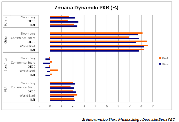 „Trudno spodziewać się wyraźniejszego strumienia kapitału w postaci akcji kredytowej, czy wzrostu konsumpcji w sytuacji kiedy gospodarki niektórych krajów strefy euro pogrążone są w recesji, bądź oscylują na jej krawędzi” – piszą analitycy Biura Maklerskiego Deutsche Bank PBC w raporcie. Niekorzystny wpływ będą też ich zdaniem nadal wywierać programy oszczędności fiskalnych wprowadzane przez wiele państw borykających się z problemami zadłużenia. – Tak silna konsolidacja budżetowa ogranicza szanse na rychły powrót gospodarek na ścieżkę wzrostową i nie poprawia wskaźników fiskalnych. Spełnienie wymogów prowadzi do dalszych cięć, a tym samym stagnacji w gospodarce. Należy liczyć się z tym, że w najbliższych miesiącach taki trend będzie kontynuowany – komentuje Jacek Buczyński.