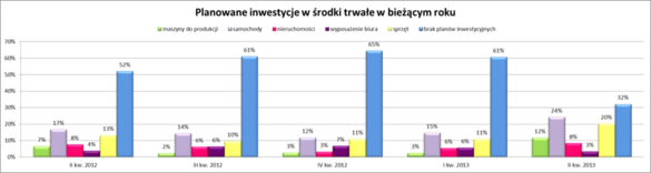 Tradycyjnie najwięcej firm planuje inwestycje w samochody. Na drugim miejscu znalazły się te, które planują zakupy sprzętu, a na trzecim planujące zakup maszyn do produkcji. Maszyny są za to najpopularniejszą forma inwestycji wśród firm produkcyjnych.