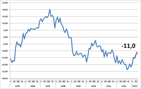 Wartości Barometru Koniunktury Konsumenckiej w latach 2005-2013