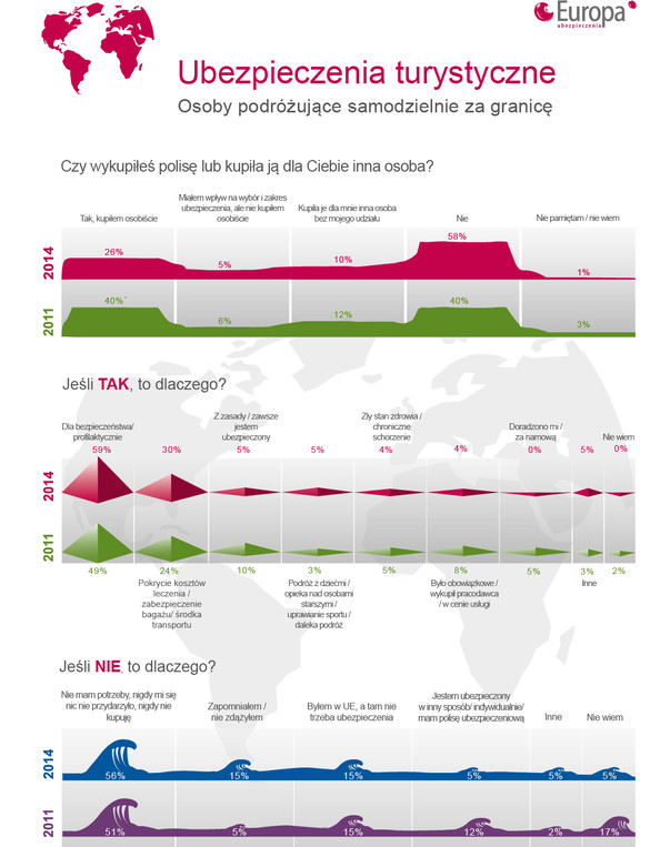 Jako powód niewykupienia polisy większość ankietowanych (56%) podaje brak potrzeby ubezpieczania się. Badani przez IMAS International twierdzą, że nigdy nic złego im się nie przydarzyło, w związku z tym nie wykupują ubezpieczeń na podróż. Kolejne 15% ankietowanych jest przekonanych, że na terenie Unii Europejskiej nie jest potrzebne ubezpieczenie i aż do 15% wzrosła liczba respondentów, którzy zapomnieli lub nie zdążyli nabyć polisy.