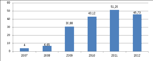 Po absolutnie najlepszym w minionym roku grudniowym wyniku programu Rodzina na Swoim, rok 2012 zamknął się 45 728 umowami. Ich łączna wartość sięgnęła 7,93 mld zł. Na ostateczne podsumowanie programu trzeba będzie jednak jeszcze chwilę poczekać, aż rozpatrzone zostaną wnioski złożone na ostatnią chwilę. Na pokazywane wartości pożyczonych pieniędzy wpływ ma także wypłata wielu kredytów w transzach. Gdyby się jednak pokusić o podliczenia, to kredytów udzielonych przez ponad sześć lat trwania programu mamy już niemal 182 tys. sztuk, łączna wartość podpisanych umów sięgnęła 33 mld zł. Rola kredytów z pomocą państwa szczególne znaczenie miała w ostatnich trzech latach, gdy stanowiły one ponad jedną piątą całości kredytowej produkcji.