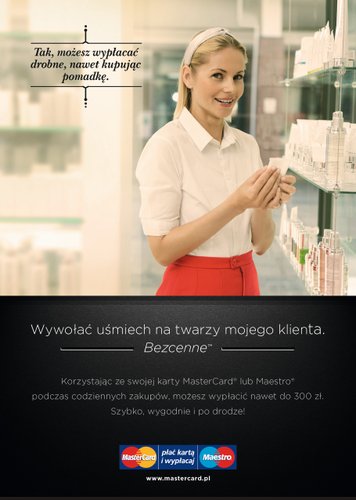 Nowa kampania reklamowa ruszyła 18 kwietnia i potrwa do końca czerwca. Będzie obejmować reklamy w prasie (Hurt i Detal, Handel, Życie Handlowe, Forbes, Newsweek), radiu, internecie oraz reklamę zewnętrzną. Celem kampanii jest informowanie o możliwości wypłaty gotówki w sklepie przez posiadaczy kart MasterCard i Maestro, a także o punktach handlowo-usługowych, w których usługa Płać kartą i wypłacaj jest dostępna.