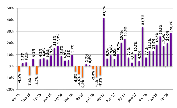 Wciąż bardzo silny popyt widoczny jest natomiast w gronie kupujących posiłkujących się kredytem hipotecznym. Banki wypłacają w ramach kredytów hipotecznych coraz wyższe kwoty, bo po pierwsze zgłasza się do nich coraz więcej chętnych, a po drugie pojedynczy kredyt opiewa na coraz wyższą kwotę. I tak sierpniowy odczyt indeksu tworzonego przez BIK sugeruje 28,5-proc. wzrost popytu na kredyty hipoteczne. Jest to bardzo duża dynamika, a ponadto już 20 z rzędu miesięczny odczyt sugerujący wzrost popytu na hipoteki.