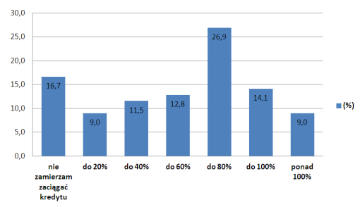 Ponad klientów pieniędzmi banku zamierza pokryć do 80% ceny mieszkania, a 14,1% chce zaciągnąć kredyt odpowiadający cenie mieszkania.