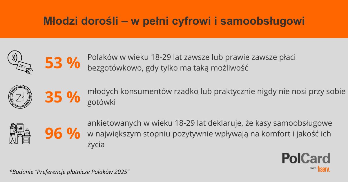 Polacy w wieku 18-29 lat to pokolenie, które wychowało się na technologii. Dla nich cyfrowe rozwiązania to nie nowość, a naturalny element codzienności. Ponad połowa przedstawicieli tej grupy wiekowej deklaruje, że zawsze lub prawie zawsze płaci bezgotówkowo, gdy tylko ma taką możliwość, a niemal 8 na 10 badanych przyznaje, że chętniej wraca do sklepów i punktów usługowych oferujących płatności cyfrowe. Między innymi takie wnioski płyną z najnowszej edycji badania PolCard from Fiserv „Preferencje płatnicze Polaków 2025”.