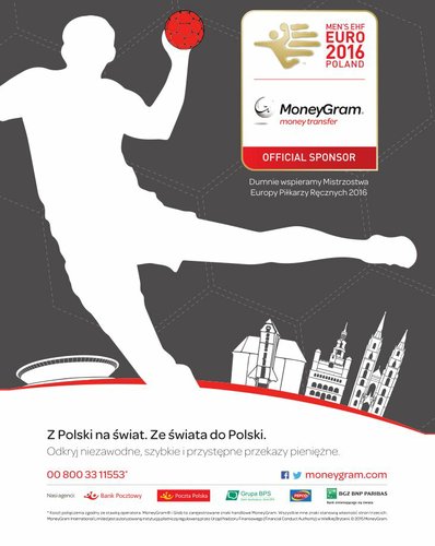 Jeszcze tylko 6 tygodni dzieli nas od meczu inauguracyjnego Mistrzostw Europy Mężczyzn w Piłce Ręcznej EHF EURO 2016. MoneyGram będzie oficjalnym sponsorem tej najważniejszej imprezy sportowej roku 2016 w naszym kraju.