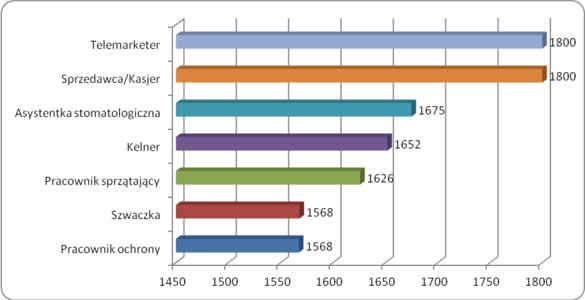Jak wynika z Ogólnopolskiego Badania Wynagrodzeń, mediana dla Polski w 2012 roku wyniosła 4 000 PLN brutto. Najniżej opłacane stanowiska znalazły się jednak znacznie poniżej jej wartości. W 2012 roku najmniej zarabiali pracownicy ochrony oraz szwaczki. Przeciętne wynagrodzenie na tych stanowiskach wyniosło 1 568 PLN brutto, a więc niewiele powyżej poziomu minimalnego wynagrodzenia w 2012 roku (1 500 PLN). Nisko byli opłacani również pracownicy porządkowi (1 626 PLN), kelnerzy (1 652 PLN) oraz asystentki stomatologiczne (1 675 PLN). Na kwoty rzędu 1 800 PLN brutto mogli liczyć sprzedawcy i telemarketerzy.