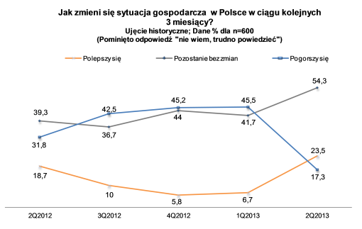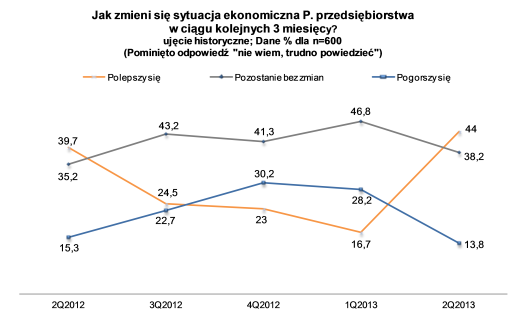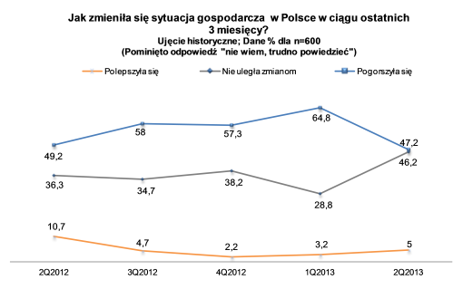 Ponad 47 proc. przedsiębiorców uważa, że kondycja gospodarcza Polski w poprzednich 3 miesiącach uległa pogorszeniu. Tym samym zmniejszył się odsetek pesymistów, w stosunku do ubiegłego kwartału (wówczas 64,8 proc.) oraz w relacji do 2 kw. roku ubiegłego (kiedy 49,2 proc. tak właśnie oceniała sytuację).